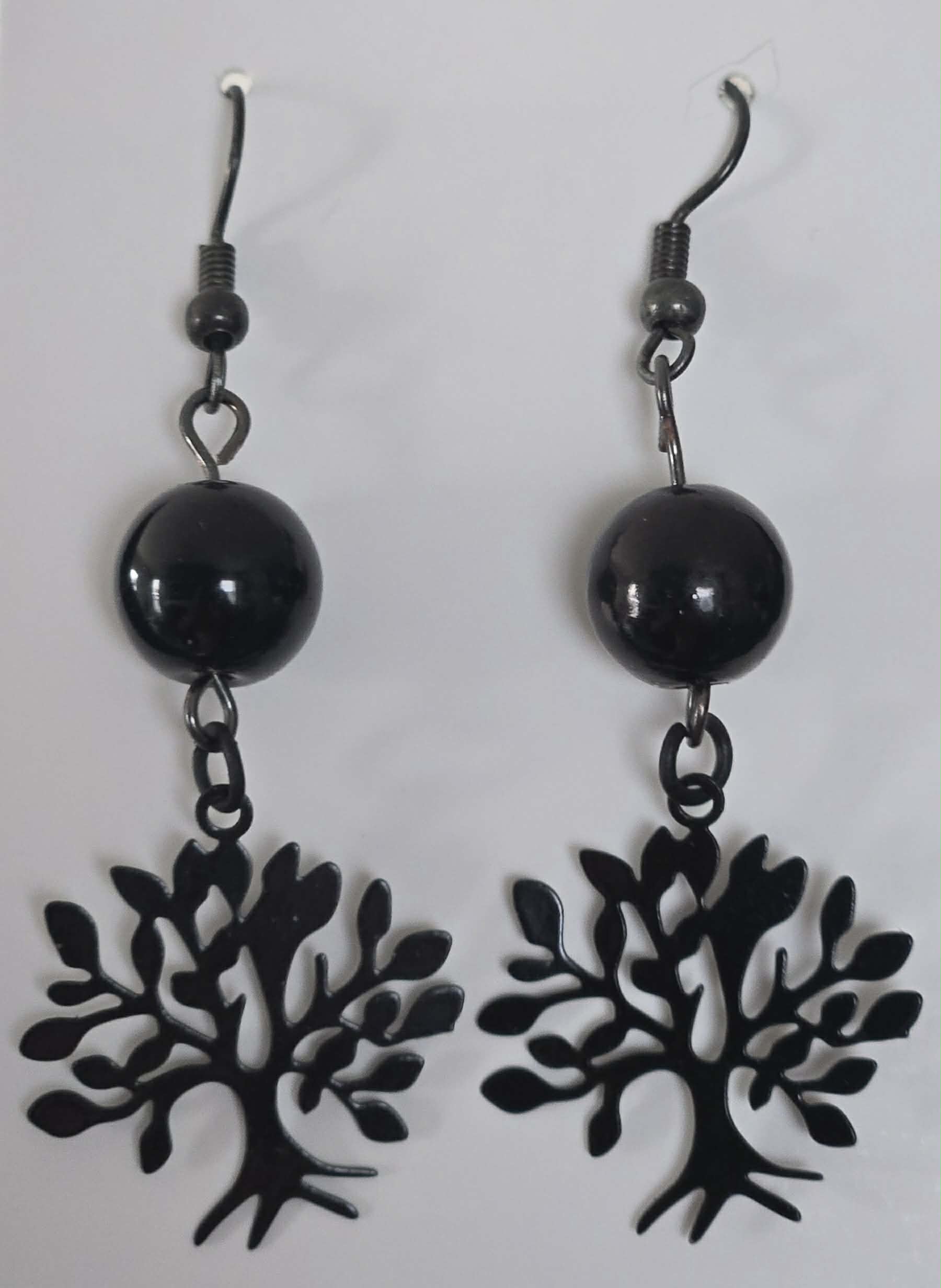 Black Tree of Life Drop Earrings